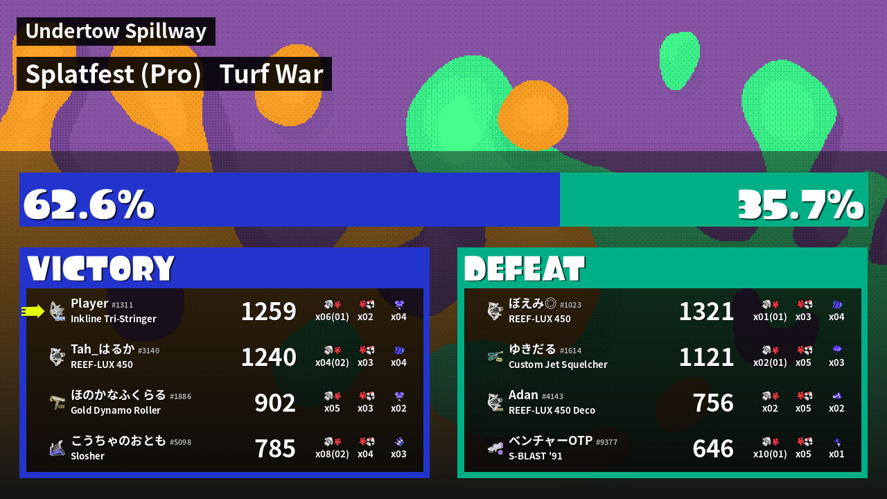 Kills / Deaths | 5 + 1 / 2 > Kill Ratio: 2.50 | ||