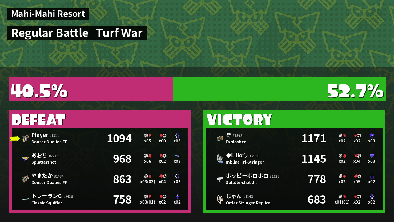 | Weapon | Douser Dualies FF ( Ink Mine / Killer Wail 5.1) | ||