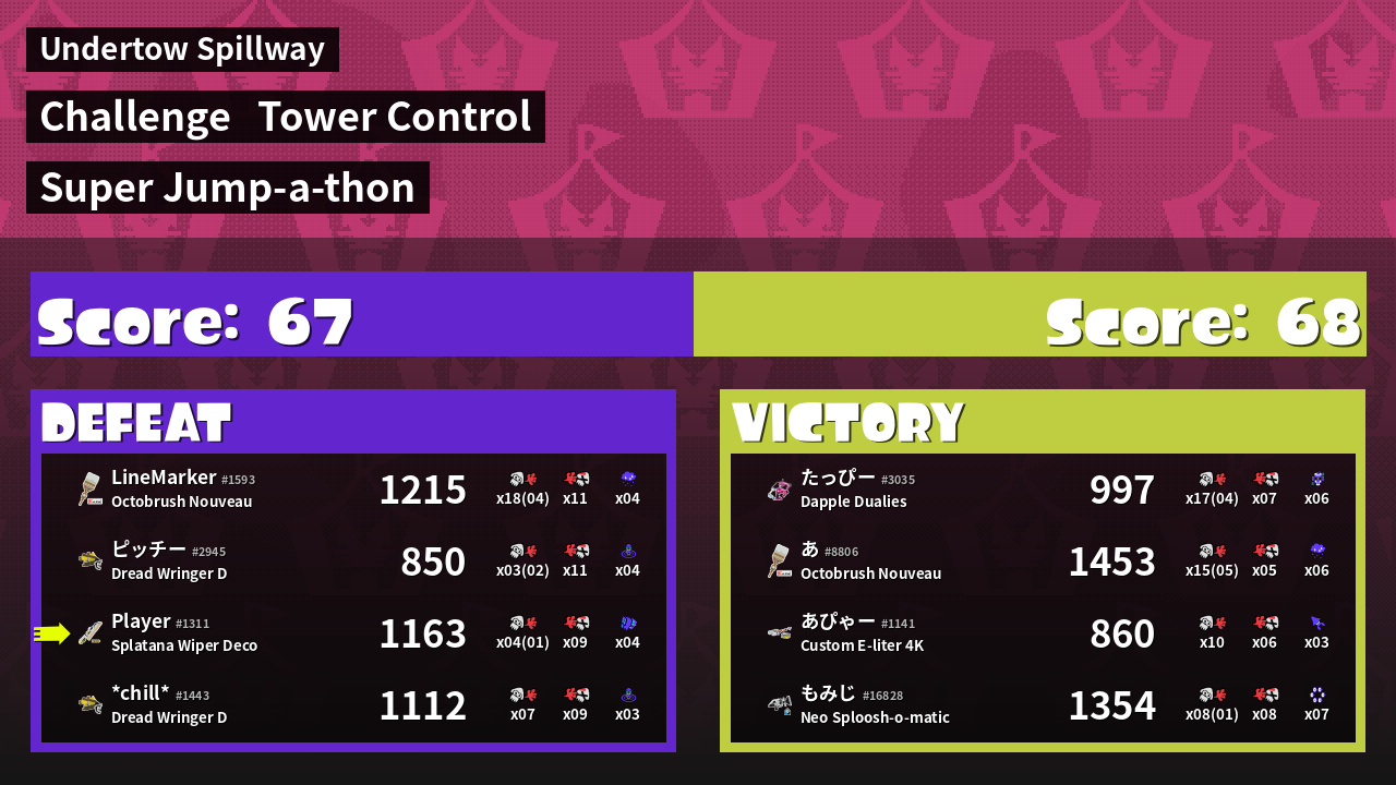 | Medals | #1 Super Jump Spot #1 Ink Consumer #2 Turf Inker | ||