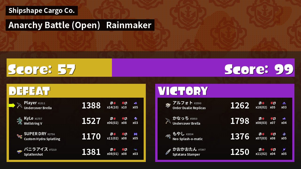 | Mode | Rainmaker - Anarchy Battle (Open) | ||