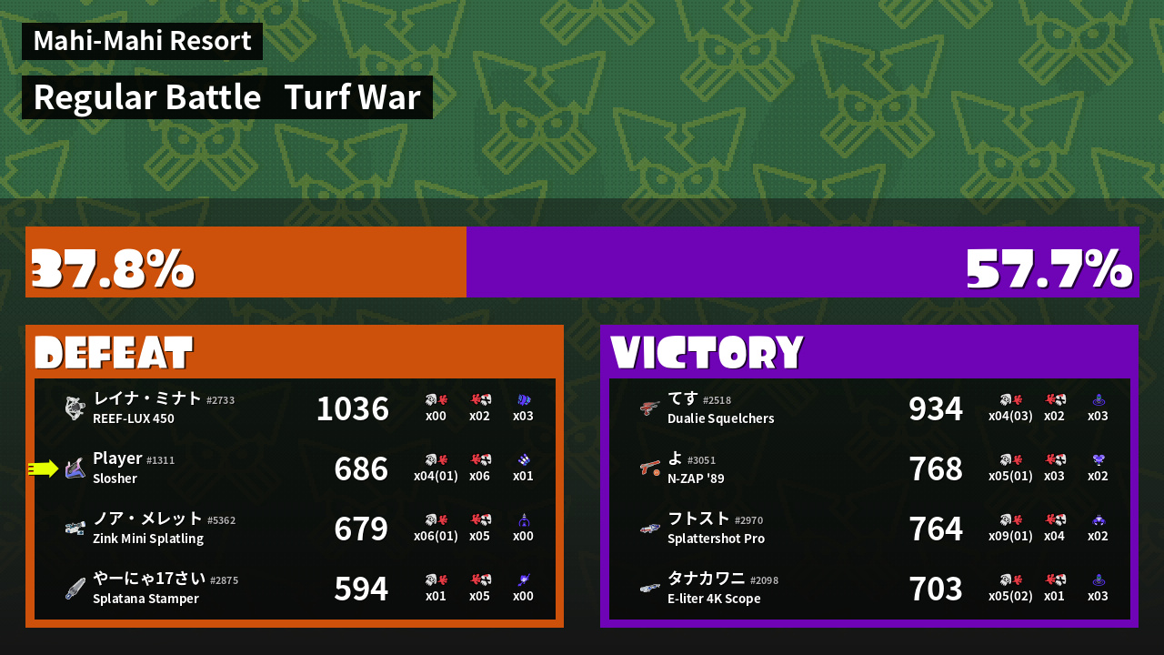 | Medals | #1 Splat Assister First Splat! #2 Overall Splatter | ||