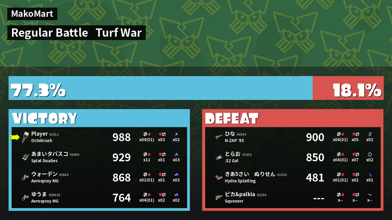 Results of saveSplatBalls's Battle
