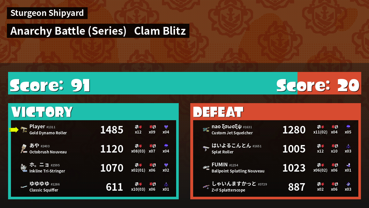 Kills / Deaths | 12 + 0 / 9 > Kill Ratio: 1.33 | ||