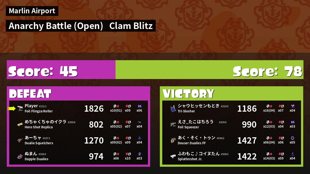 | Mode | Clam Blitz - Anarchy Battle (Open) | ||