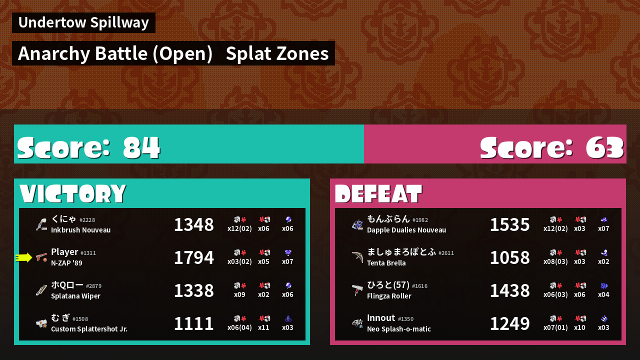 | Mode | Splat Zones - Anarchy Battle (Open) | ||
