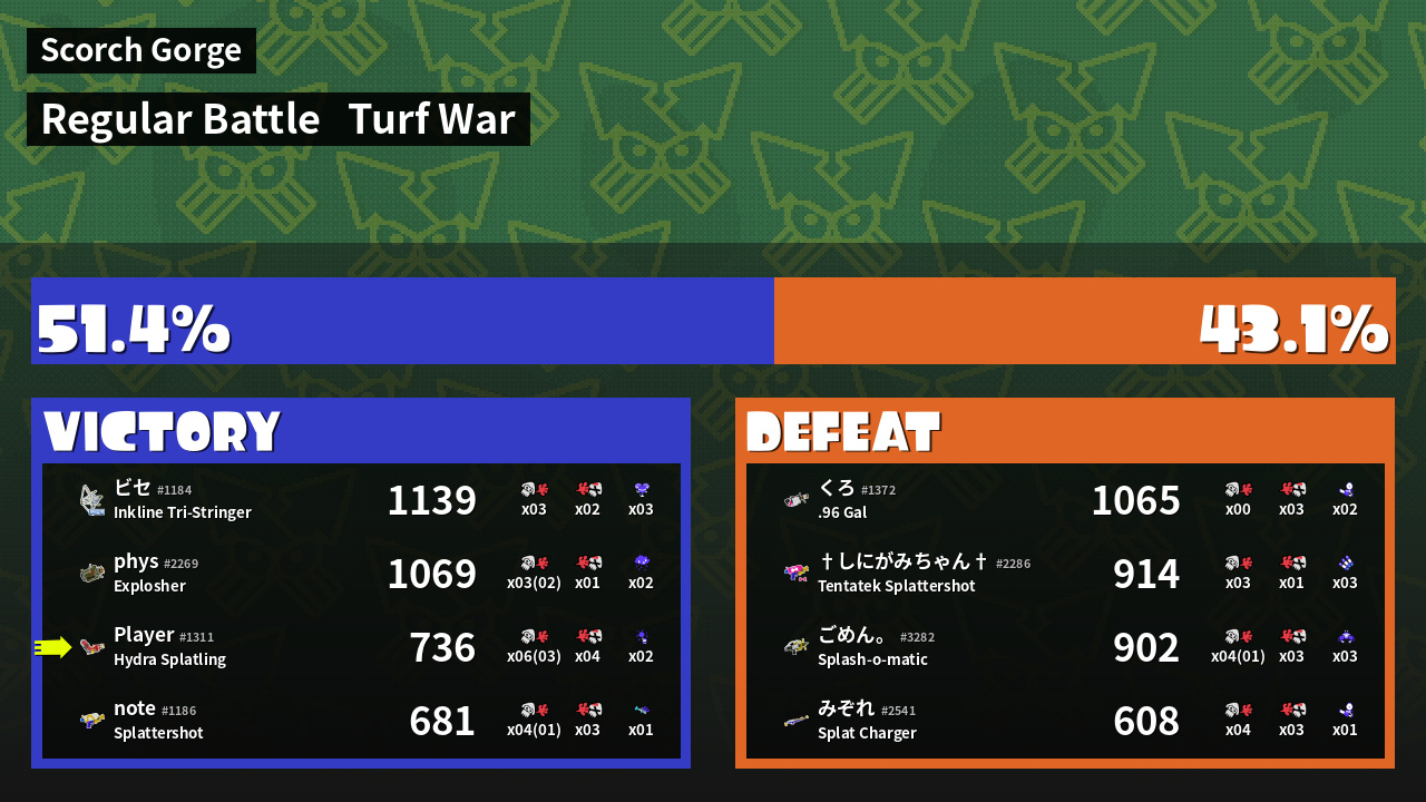 Results of saveSplatBalls's Battle