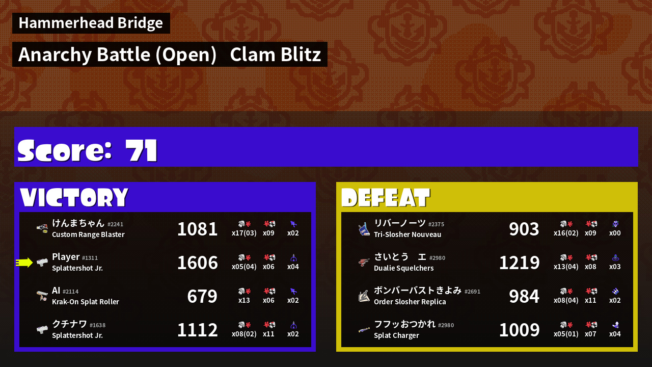 Results of saveSplatBalls's Battle