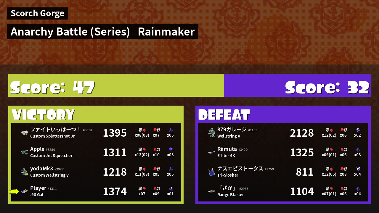 Results of saveSplatBalls's Battle