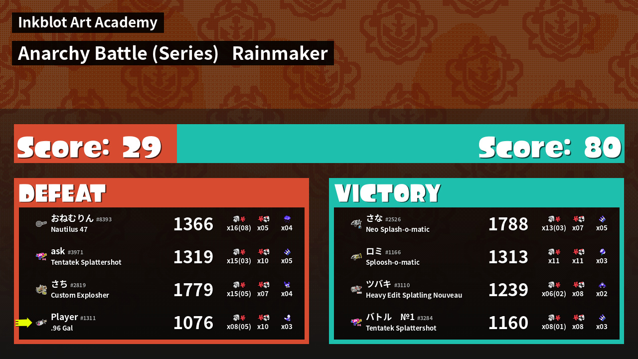 Results of saveSplatBalls's Battle