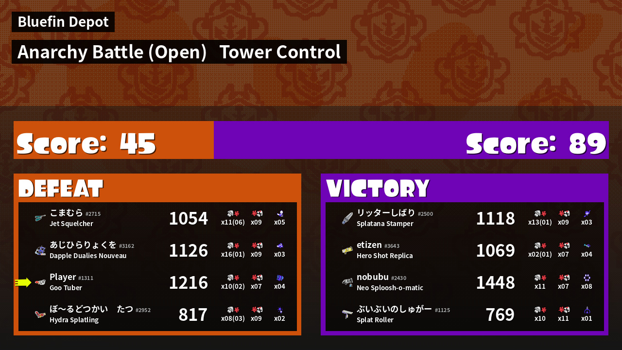 | Mode | Tower Control - Anarchy Battle (Open) | ||