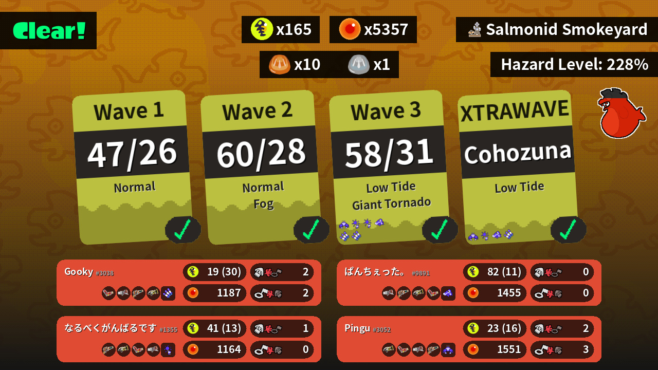 | Boss Salmonid | 19 | 19 | 7 | 15 |