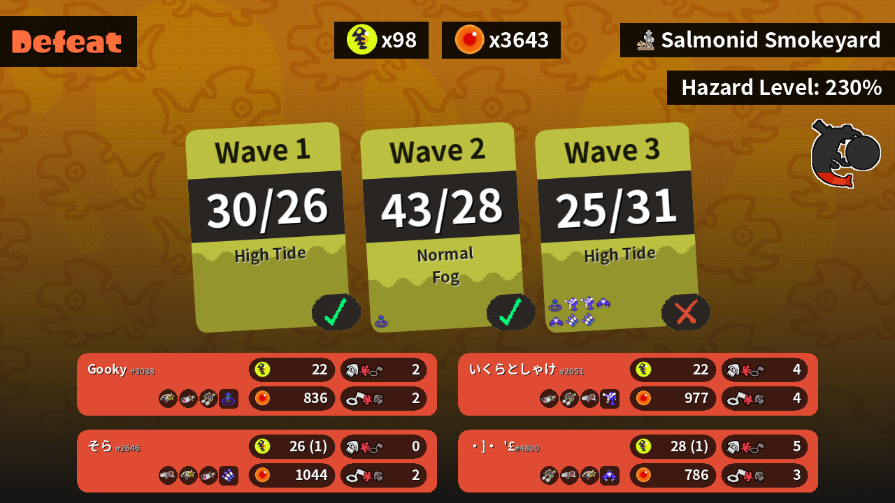 | Boss Salmonid | 20 | 14 | 15 | 18 |