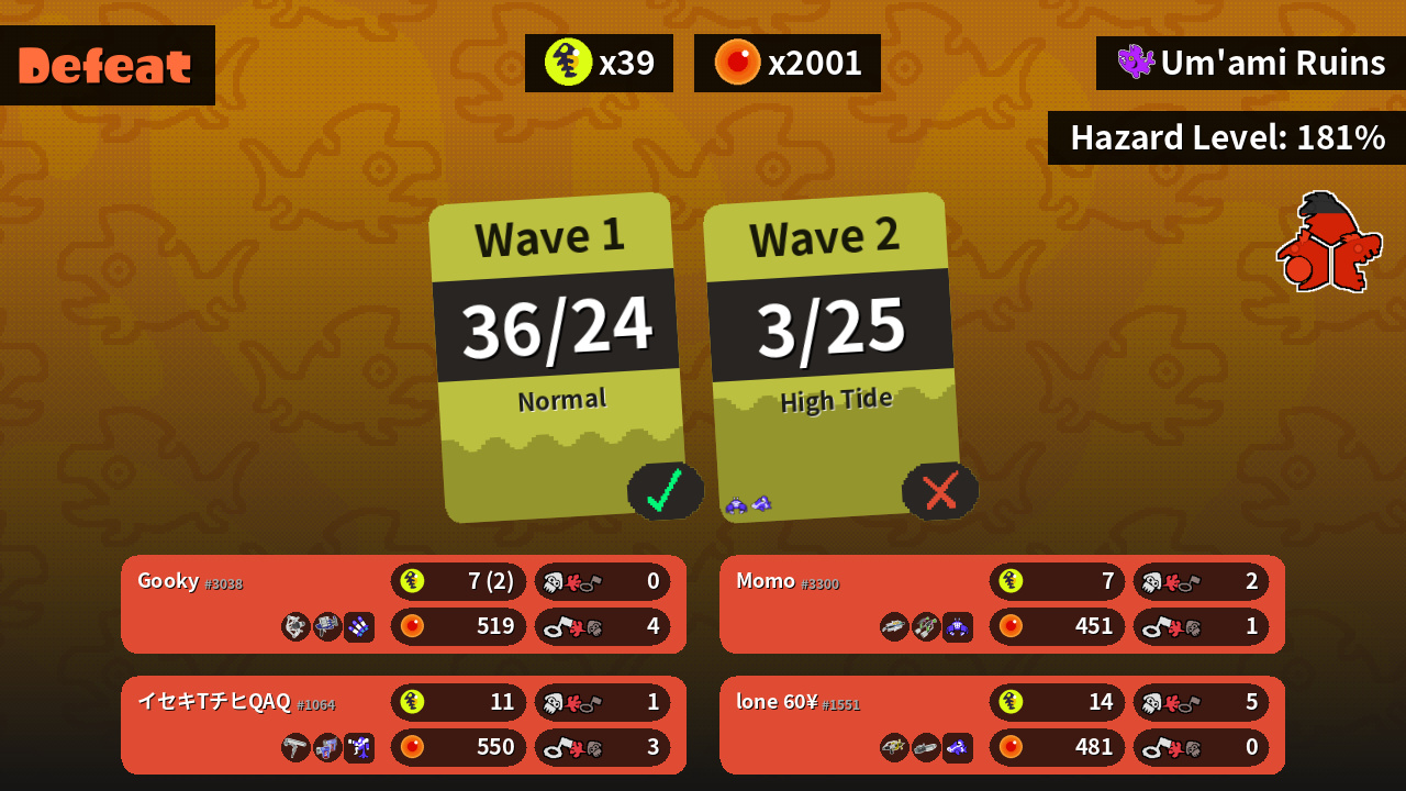 | Weapons | REEF-LUX 450 Clash Blaster | Splash-o-matic Ballpoint Splatling | Dynamo Roller Glooga Dualies | Grizzco Brella Splat Dualies |