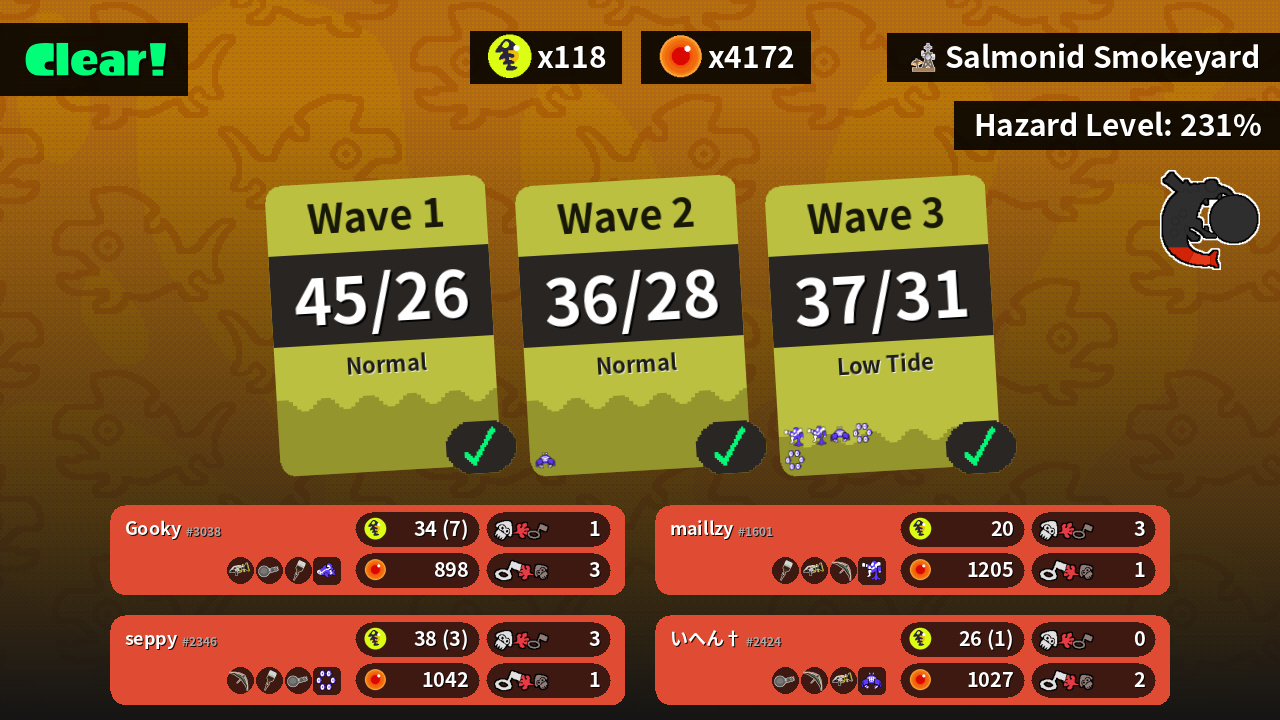 | Boss Salmonid | 22 | 11 | 21 | 17 |