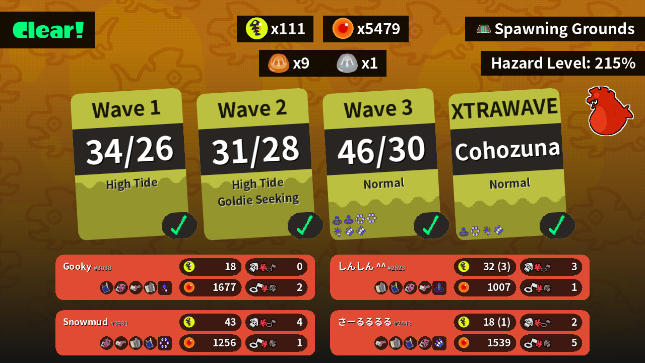 | Weapons | Tri-Slosher Dapple Dualies Heavy Splatling Sloshing Machine | Dapple Dualies Heavy Splatling Sloshing Machine Tri-Slosher | Sloshing Machine Tri-Slosher Dapple Dualies Heavy Splatling | Heavy Splatling Sloshing Machine Tri-Slosher Dapple Dualies |