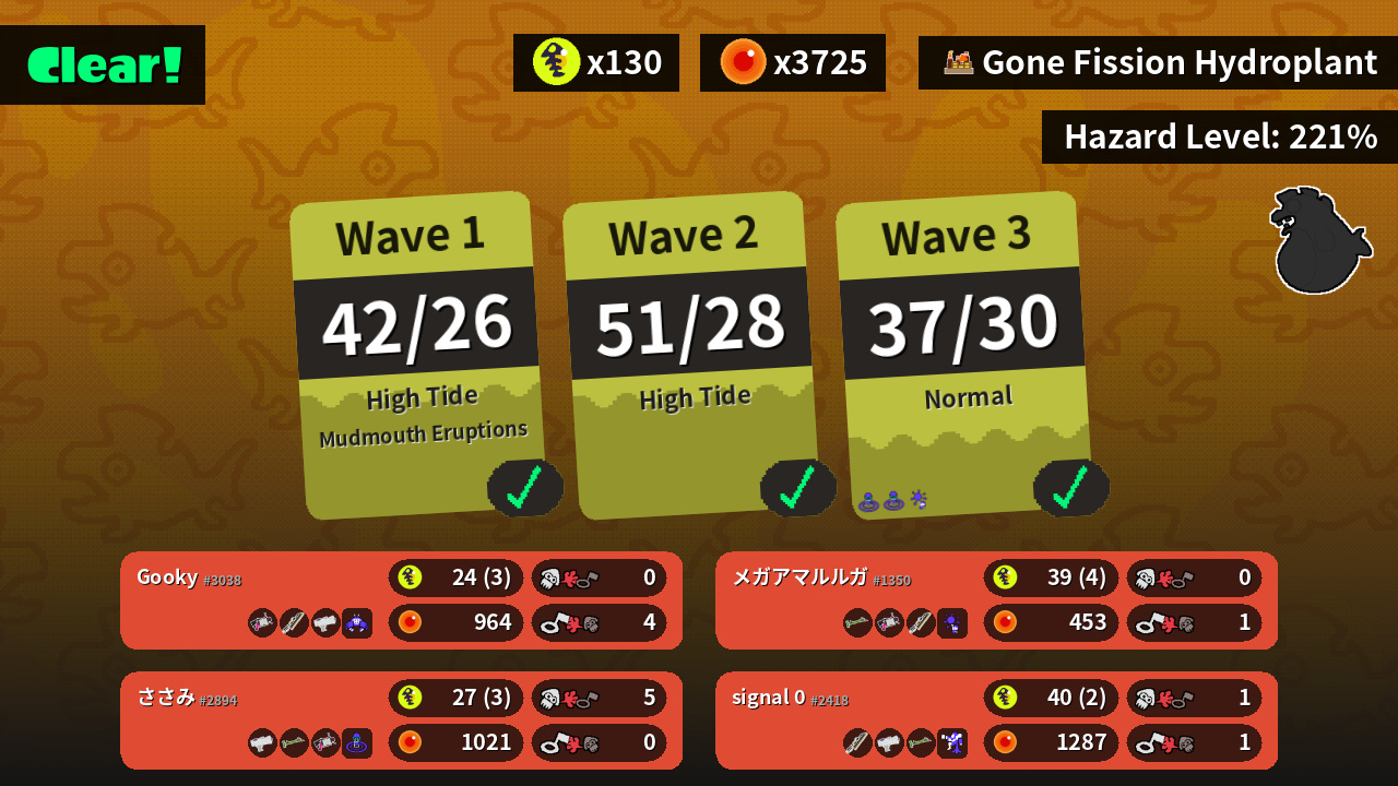 | Weapons | .52 Gal Splatana Wiper Splattershot Jr. | Splatana Wiper Splattershot Jr. Bamboozler 14 Mk I | Bamboozler 14 Mk I .52 Gal Splatana Wiper | Splattershot Jr. Bamboozler 14 Mk I .52 Gal |