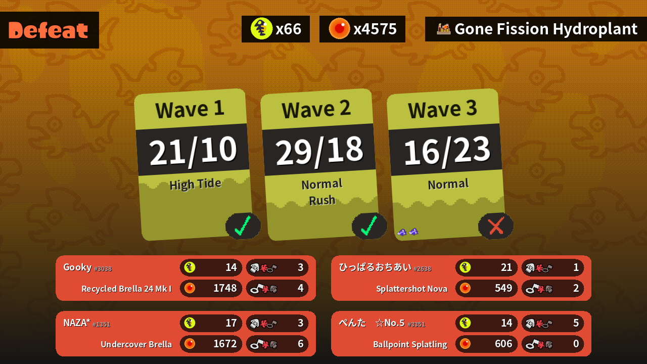 | Weapons | Recycled Brella 24 Mk I | Splattershot Nova | Undercover Brella | Ballpoint Splatling |