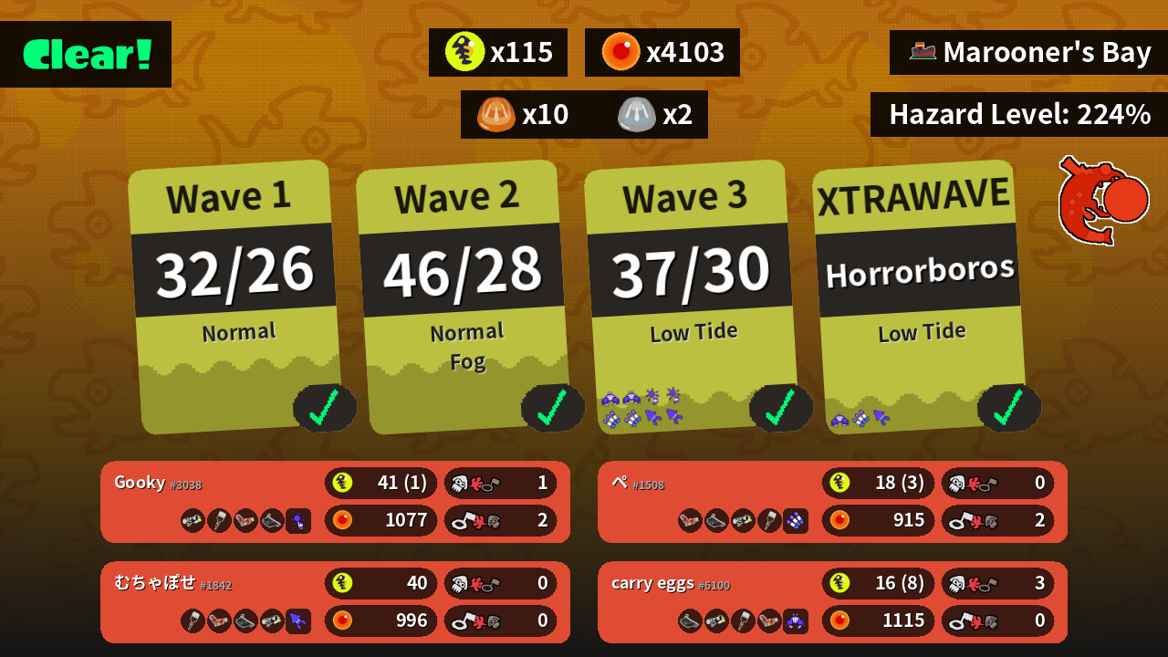 | Boss Salmonid | 21 | 25 | 16 | 12 |