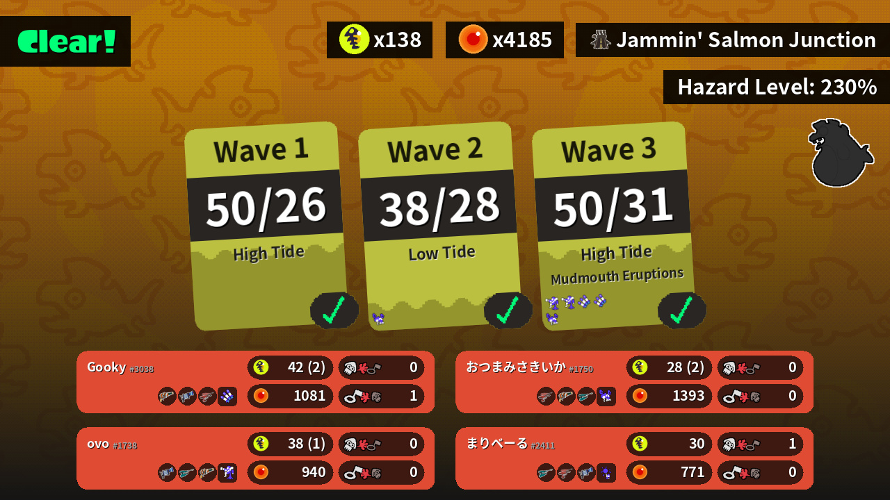 | Weapons | Squeezer L-3 Nozzlenose Dualie Squelchers | L-3 Nozzlenose Jet Squelcher Squeezer | Jet Squelcher Dualie Squelchers L-3 Nozzlenose | Dualie Squelchers Squeezer Jet Squelcher |