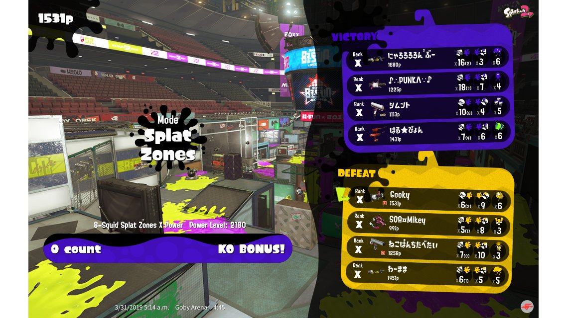 | Mode | Splat Zones - Ranked Battle | |||||||||||||||||||||||||||||||||||||