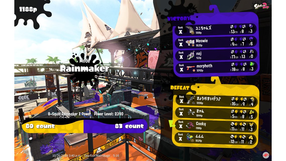 | SplatNet Battle # | 34,874 | ||||||||||||||||||||||||||||||||||