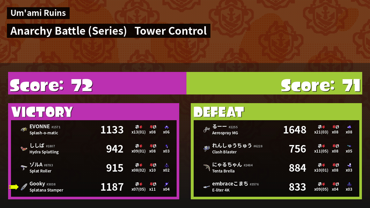 | Medals | #1 Turf Inker #1 Splat Assister #1 Tower Stopper | ||