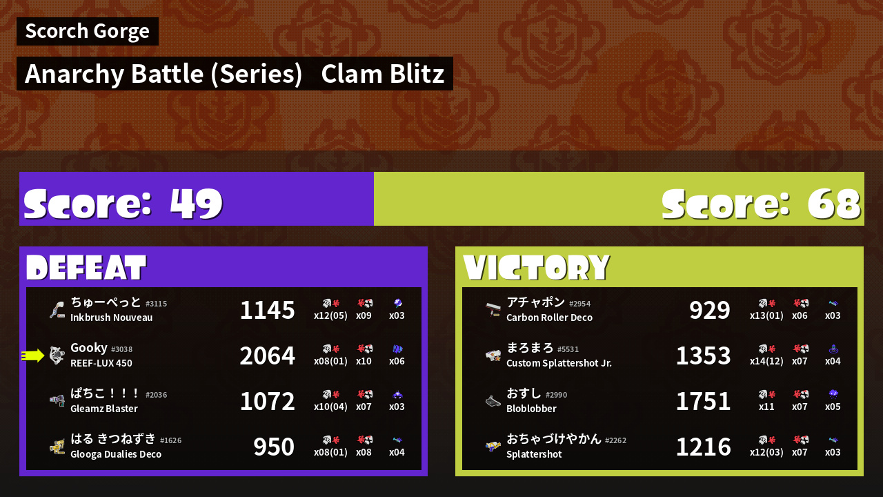 | Medals | #1 Score Booster #1 Turf Inker #1 Enemy Splatter | ||
