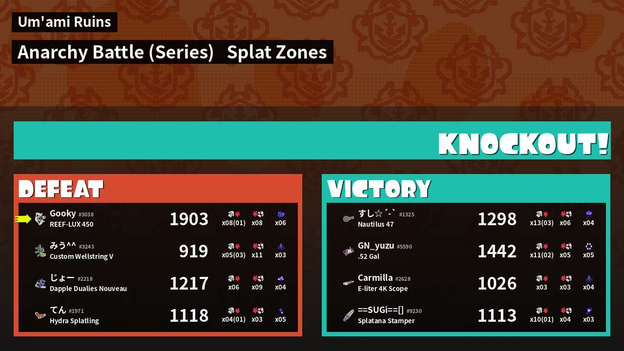 | Medals | #1 Overall Splatter #1 Splat Zone Inker #1 Turf Inker | ||