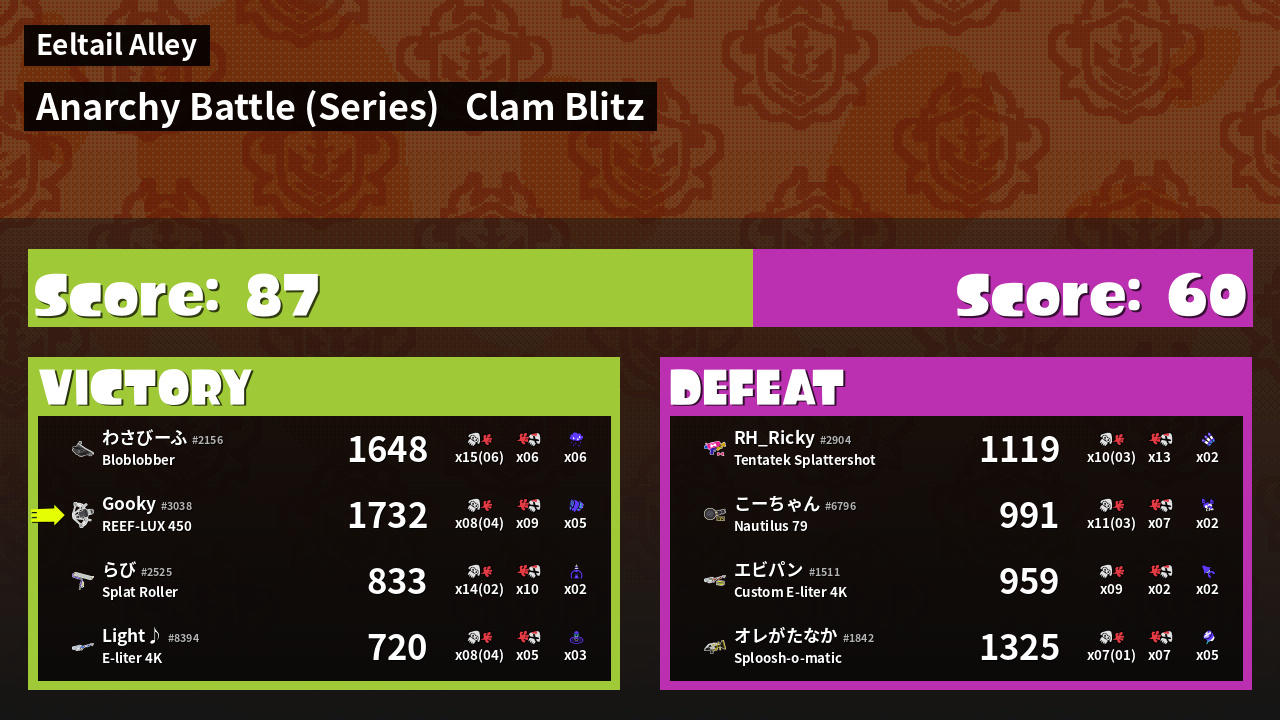 | Mode | Clam Blitz - Anarchy Battle (Series) | ||
