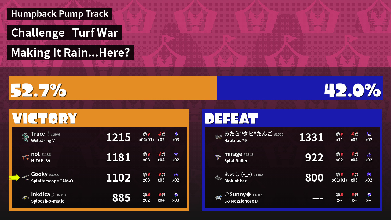 | Mode | Turf War - Challenge | ||