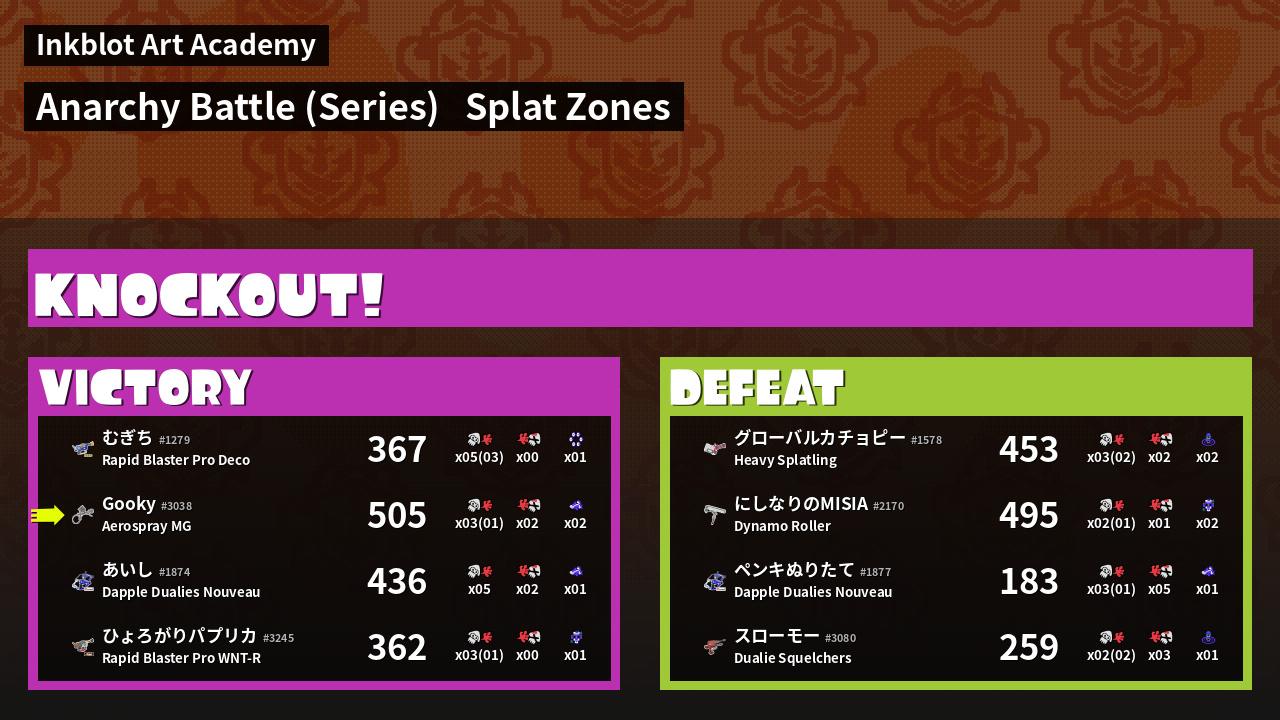 | Mode | Splat Zones - Anarchy Battle (Series) | ||
