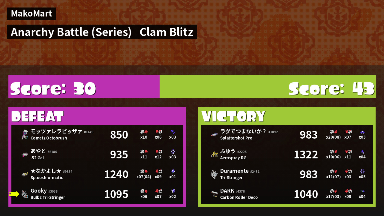 Results of Gooky's Battle