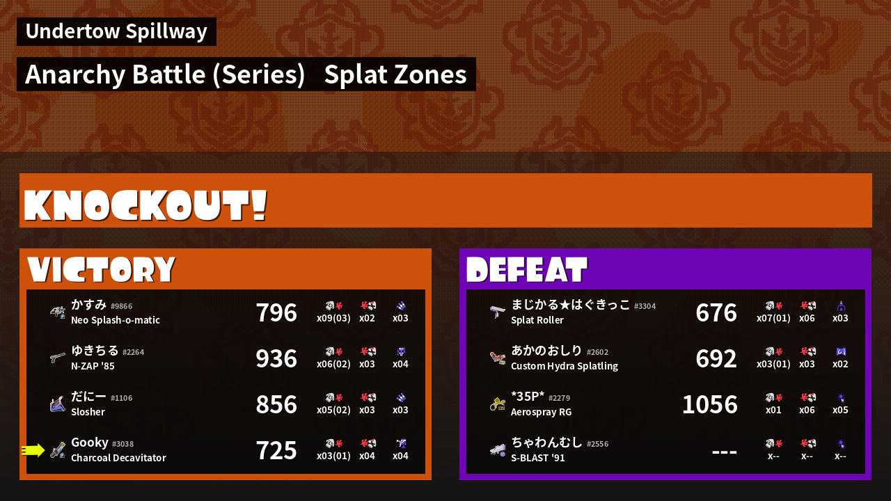 | Mode | Splat Zones - Anarchy Battle (Series) | ||