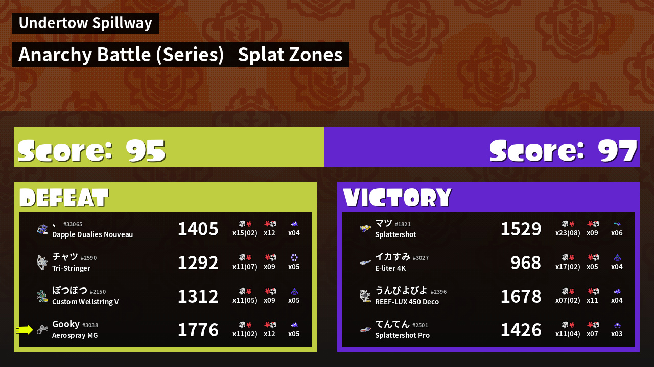 | Mode | Splat Zones - Anarchy Battle (Series) | ||