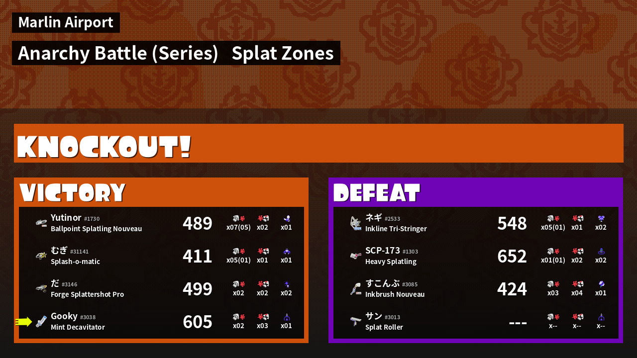 | Mode | Splat Zones - Anarchy Battle (Series) | ||