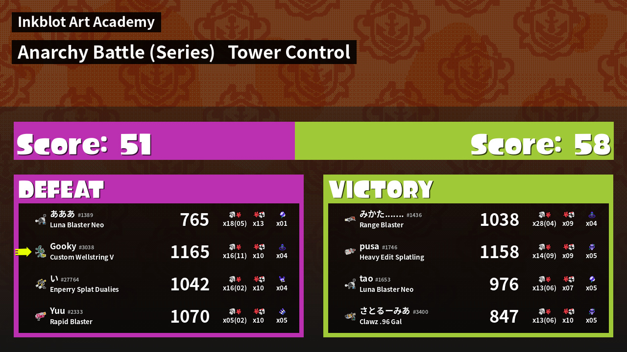 | Mode | Tower Control - Anarchy Battle (Series) | ||