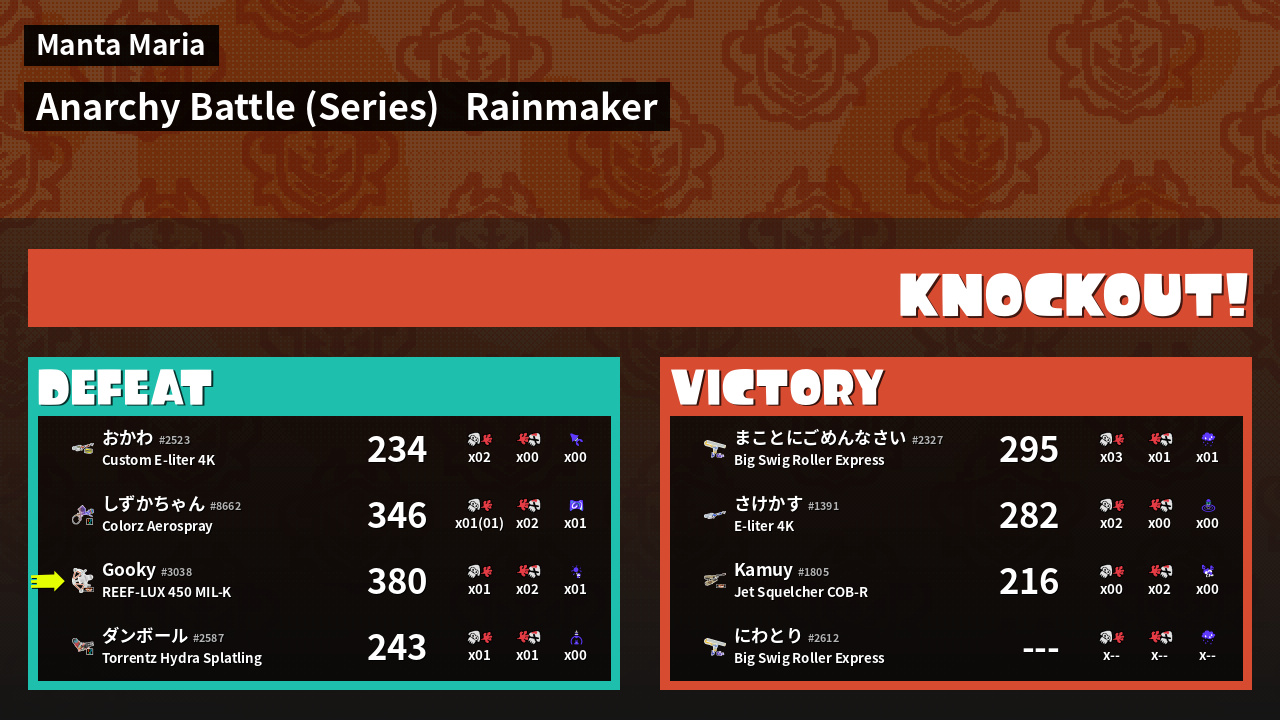 Name | Weapon | Inked | ![]() |