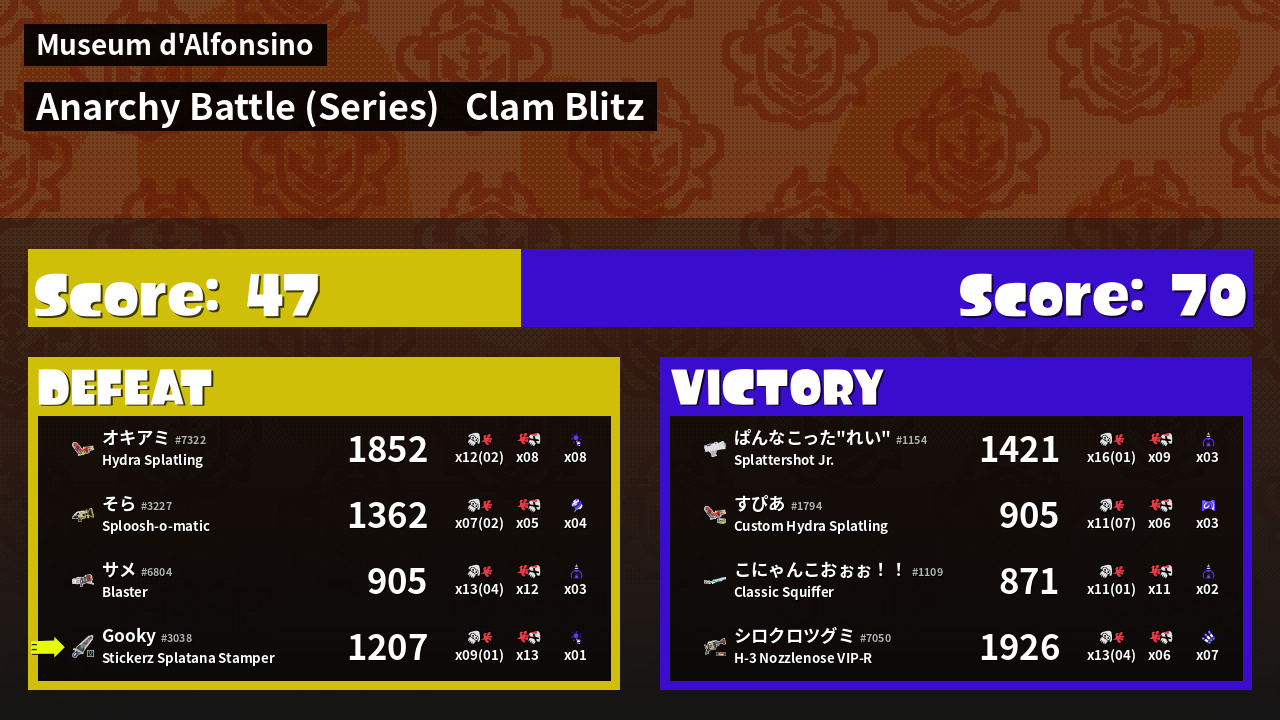 Results of Gooky's Battle