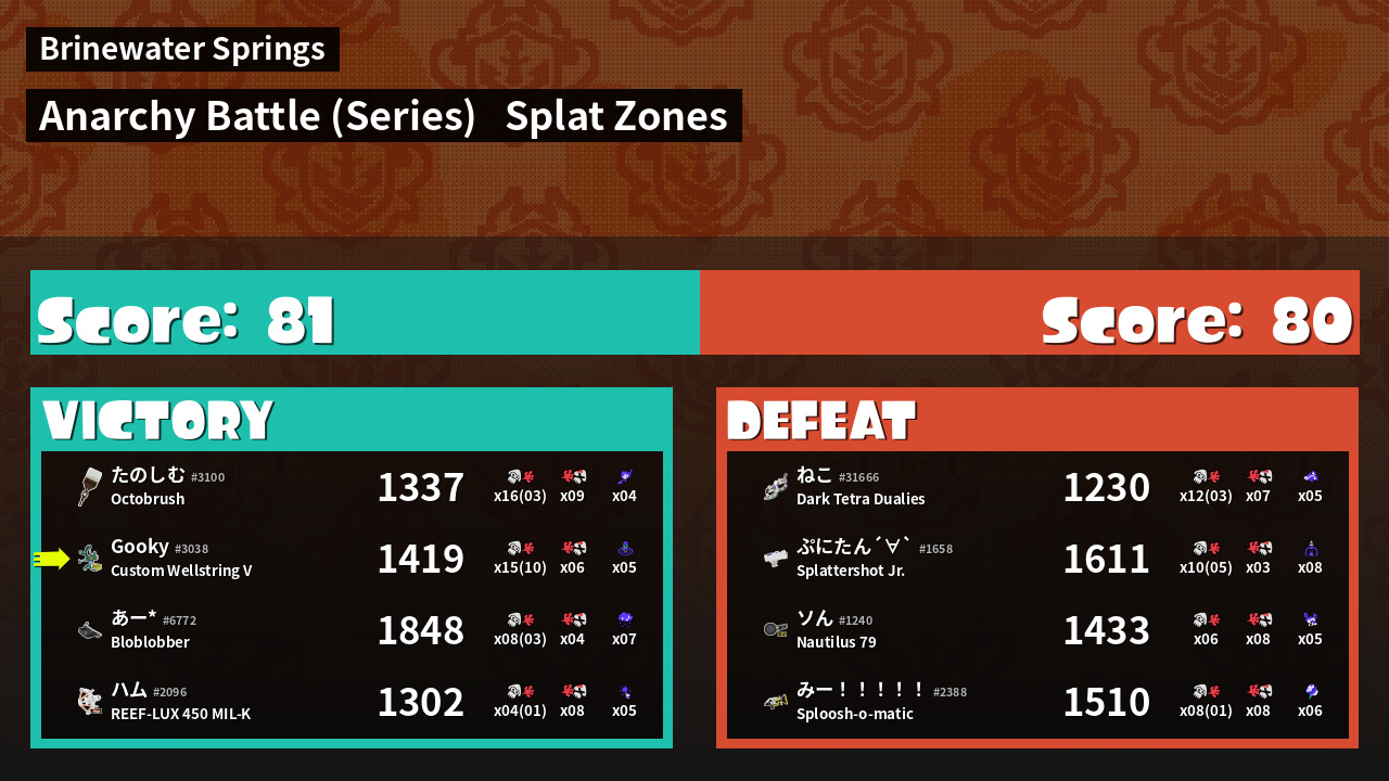 | Mode | Splat Zones - Anarchy Battle (Series) | ||