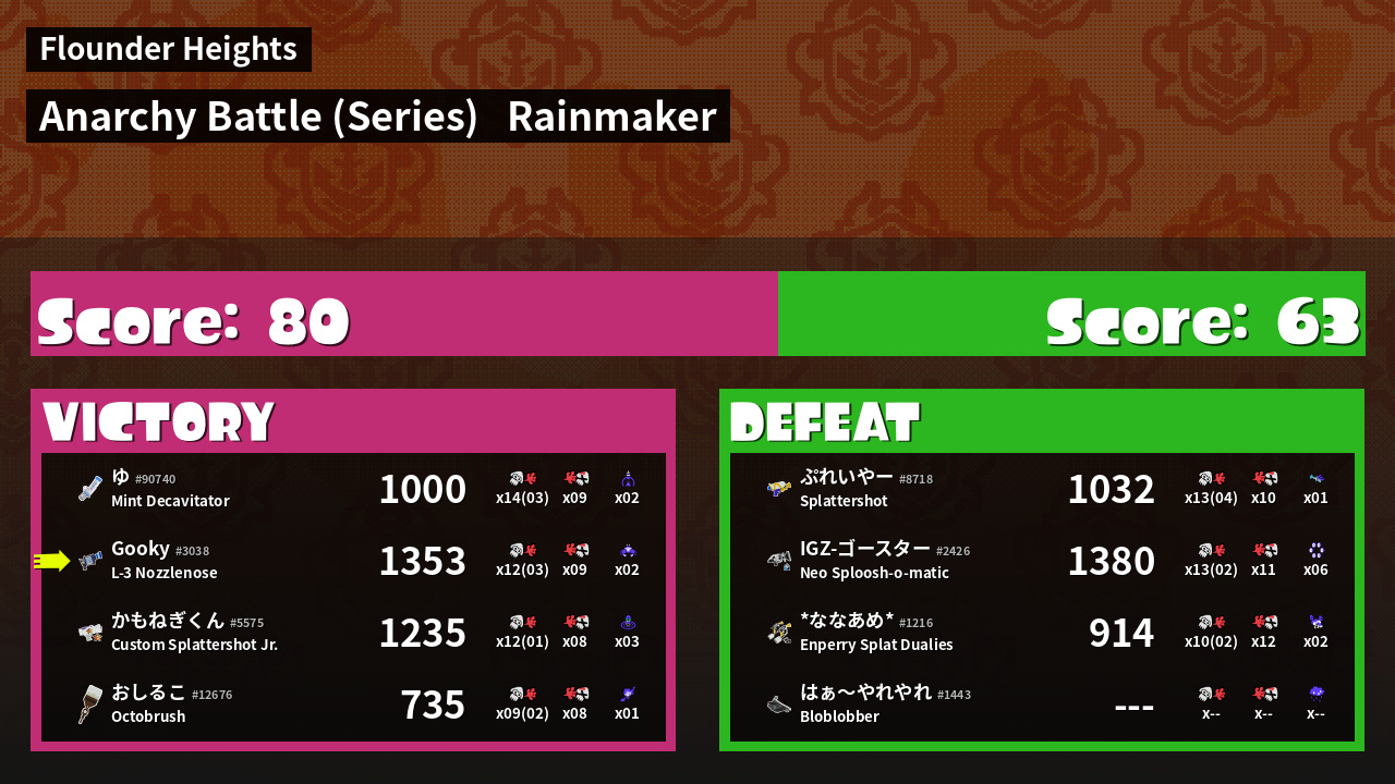| Mode | Rainmaker - Anarchy Battle (Series) | ||