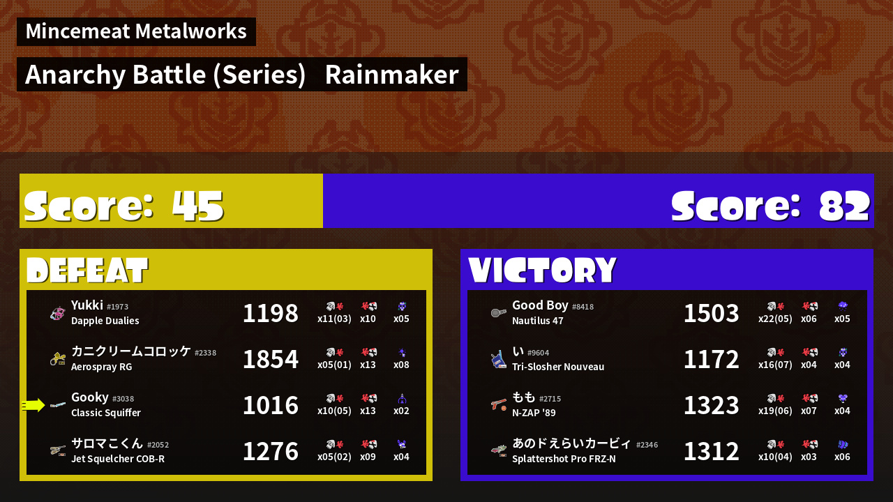 | Mode | Rainmaker - Anarchy Battle (Series) | ||