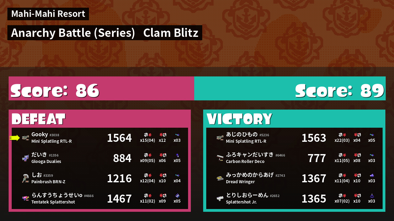 | Mode | Clam Blitz - Anarchy Battle (Series) | ||