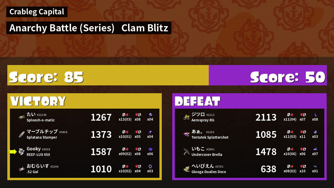 | Mode | Clam Blitz - Anarchy Battle (Series) | ||