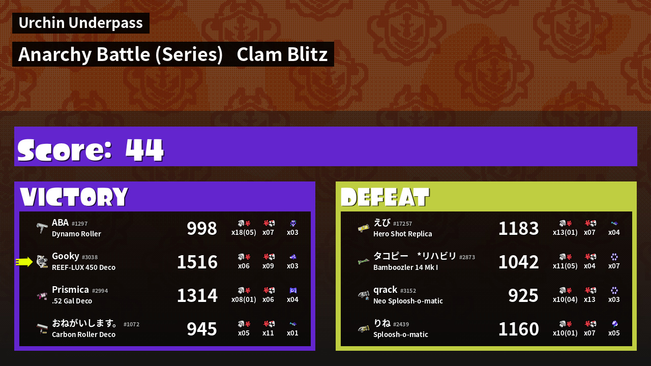 | Mode | Clam Blitz - Anarchy Battle (Series) | ||