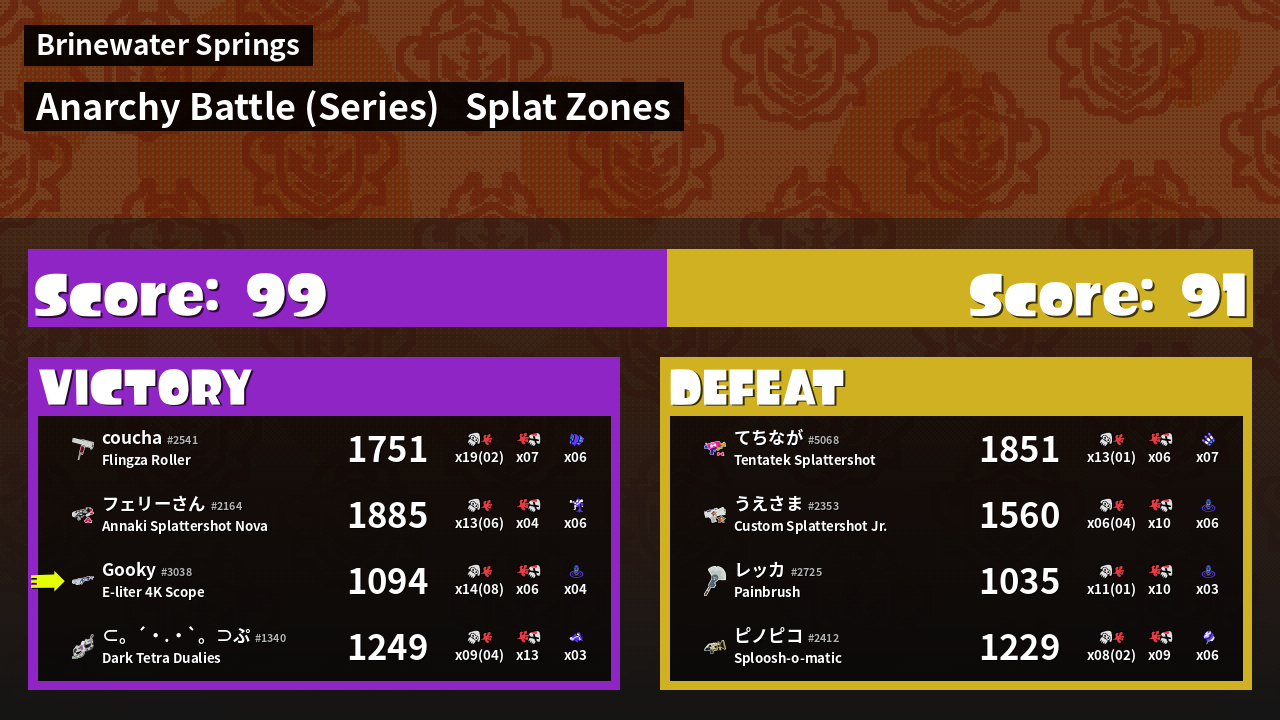 | Mode | Splat Zones - Anarchy Battle (Series) | ||
