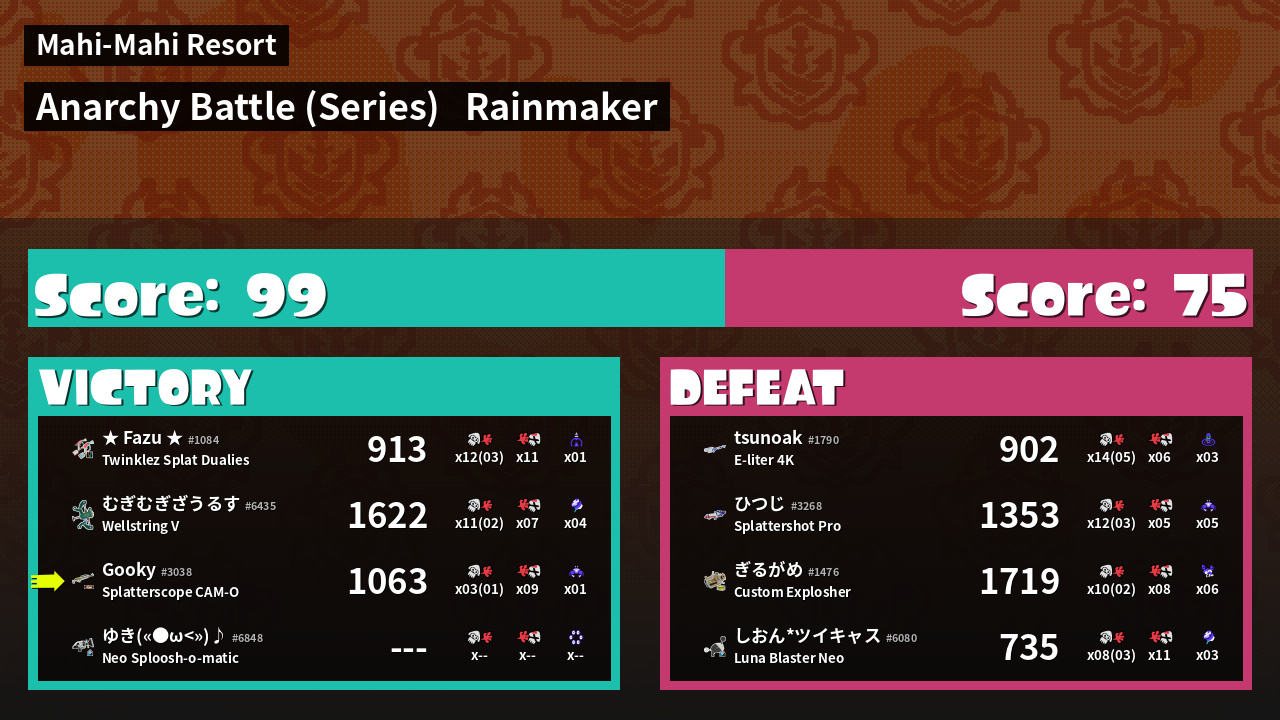 Results of Gooky's Battle