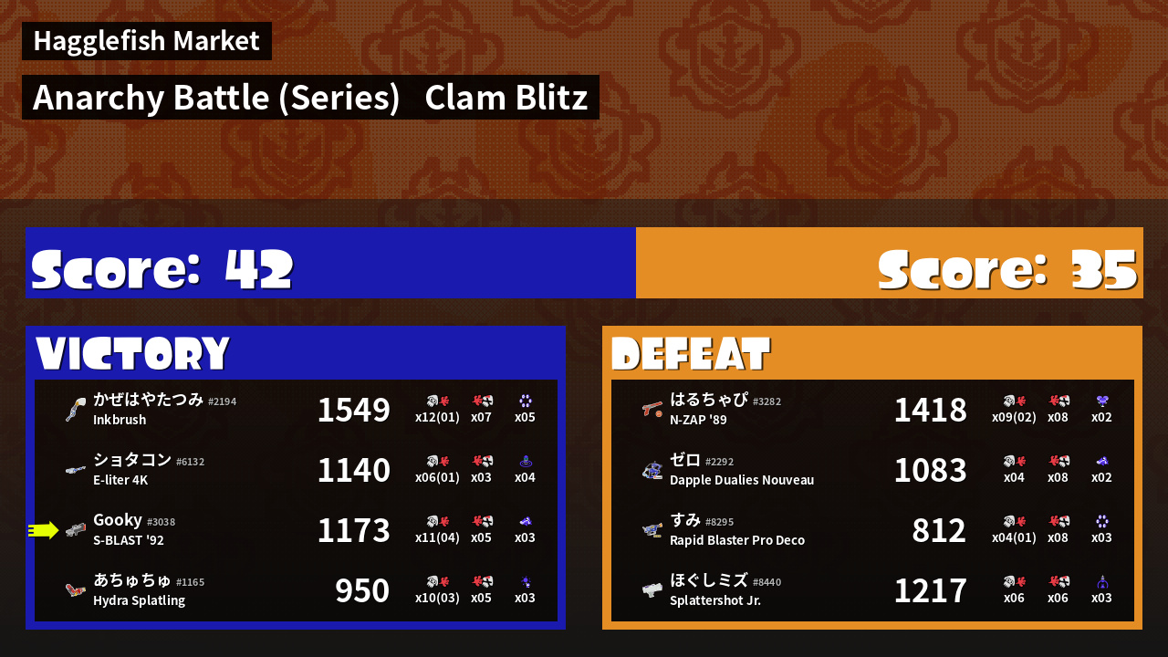 | Mode | Clam Blitz - Anarchy Battle (Series) | ||