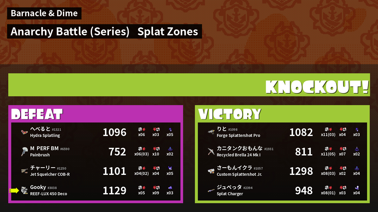 | Mode | Splat Zones - Anarchy Battle (Series) | ||