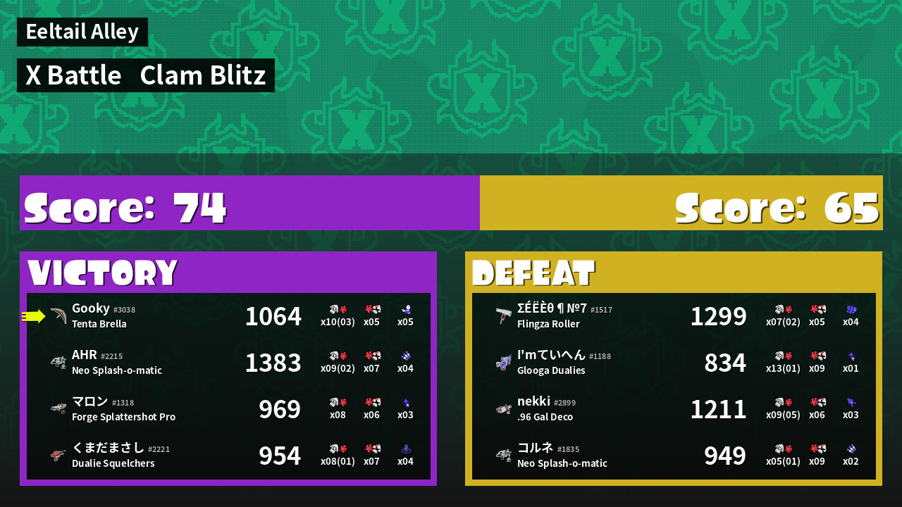 | Mode | Clam Blitz - X Battle | ||