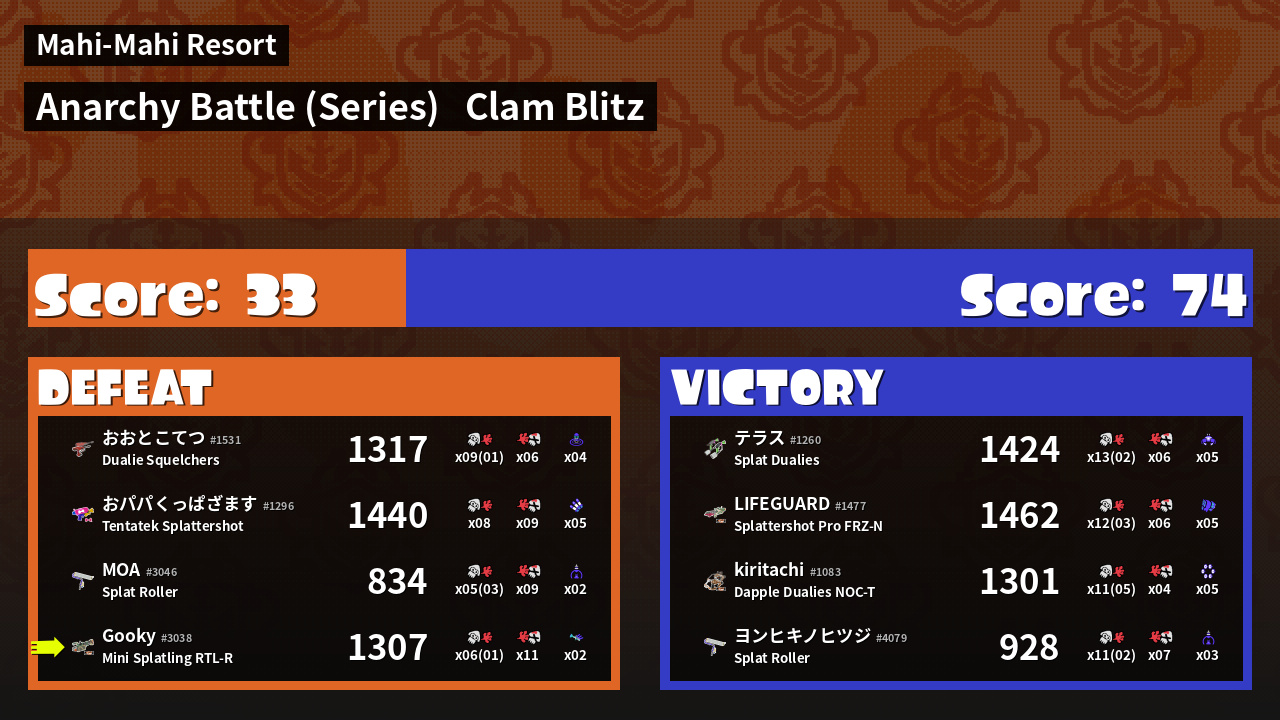 Results of Gooky's Battle